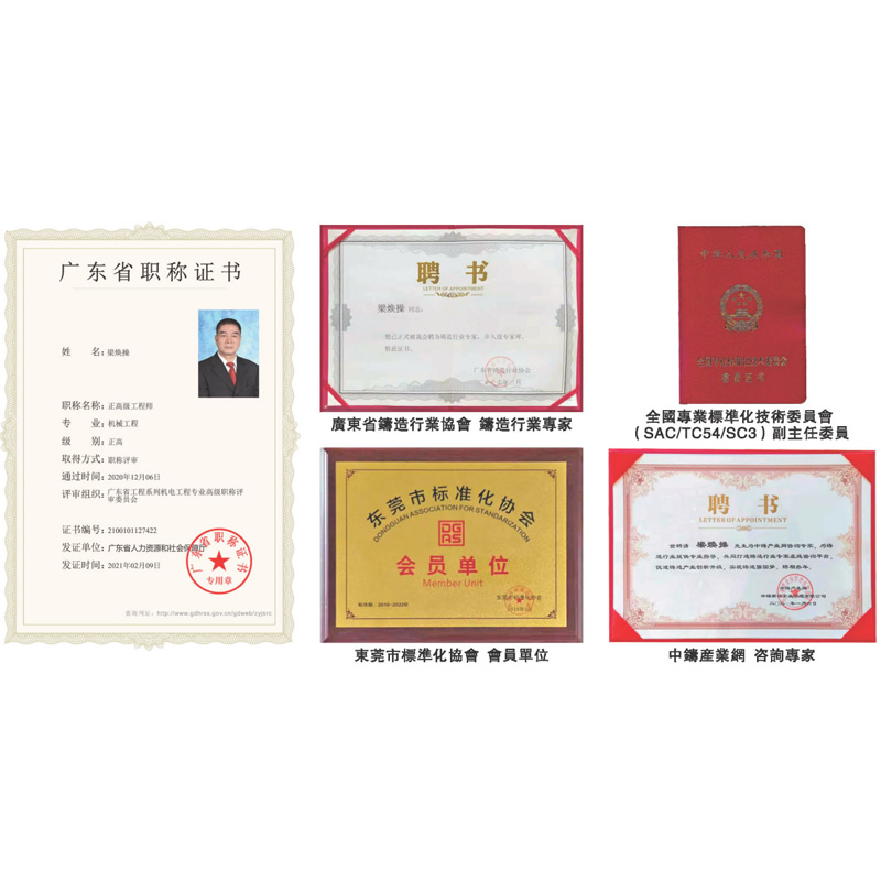 1998年RoHS認證 、2002年“香港工業優(yōu)異獎”、2009年成為合金材料國家標準起草單位、GB/T13818-2009《壓鑄鋅合金》、GB/T15115-2009《壓鑄鋁合金》、GB/T13821-2009《鋅合金壓鑄件》、通過ISO9001:2015、ISO14001:2015、2021年《壓鑄鋅合金》團體標準。